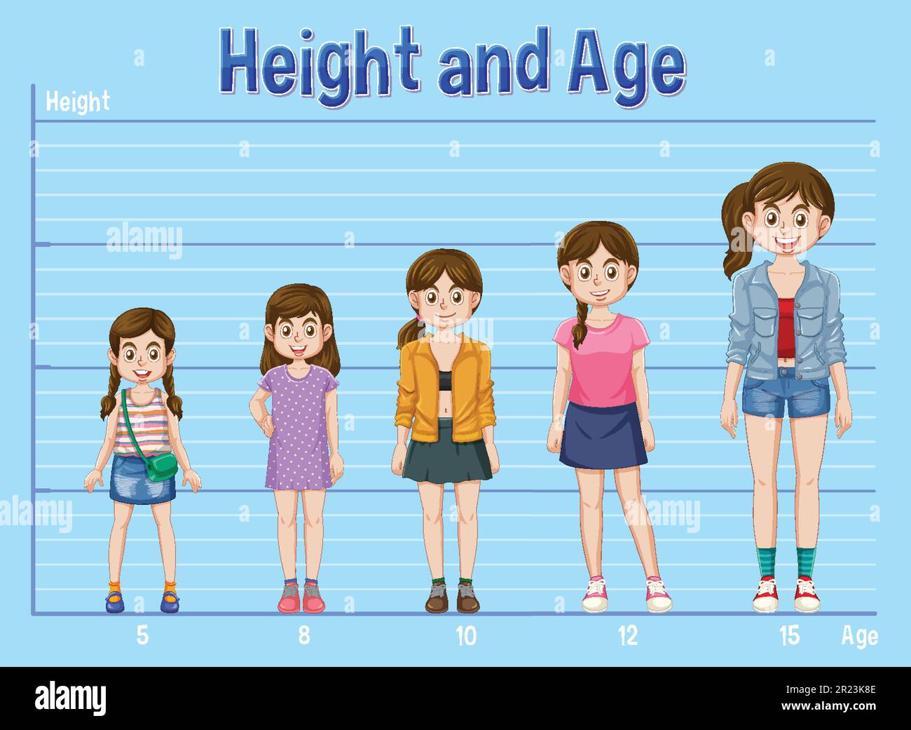 Group of Girls Displaying Different Ages and Heights illustration Stock