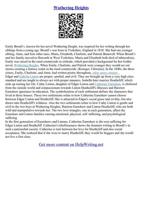 Emily Bronte Wuthering Heights Summary Characters and Analysis