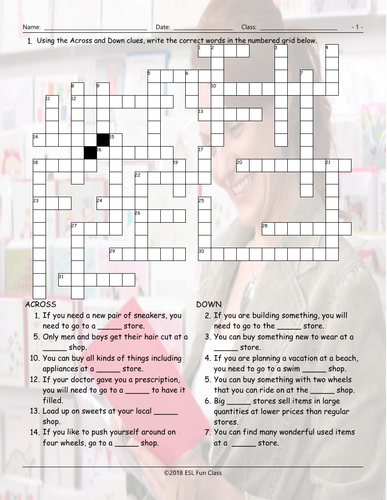 Stores Shops Crossword Puzzle Teaching Resources