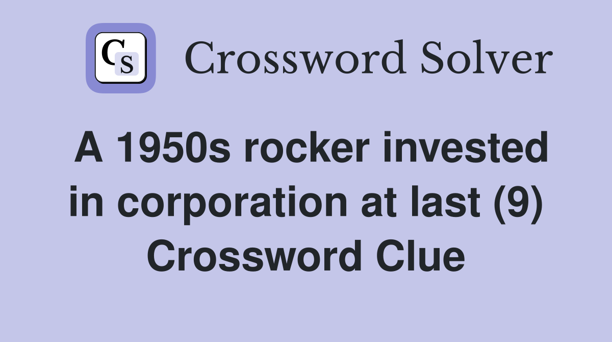A 1950s rocker invested in corporation at last (9) Crossword Clue