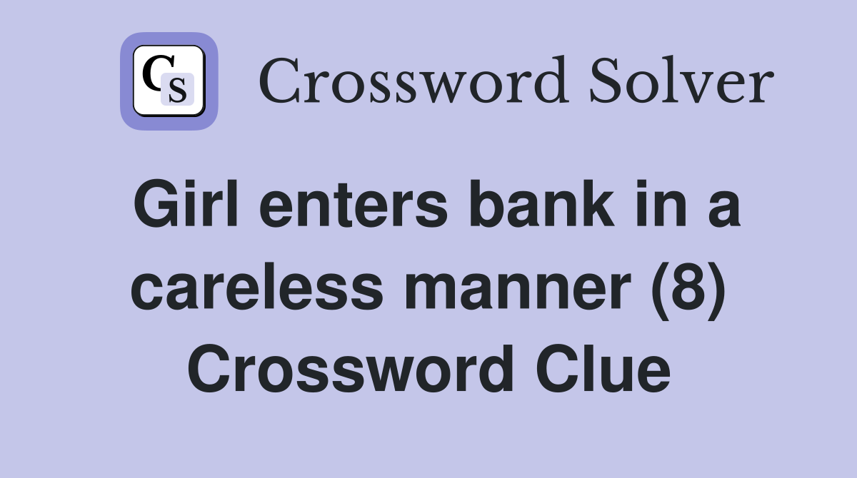 Girl enters bank in a careless manner (8) Crossword Clue Answers