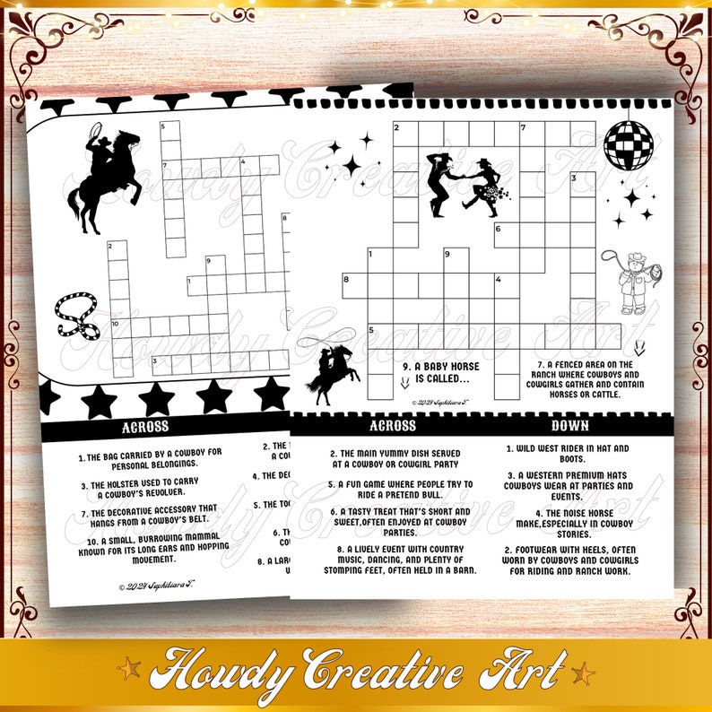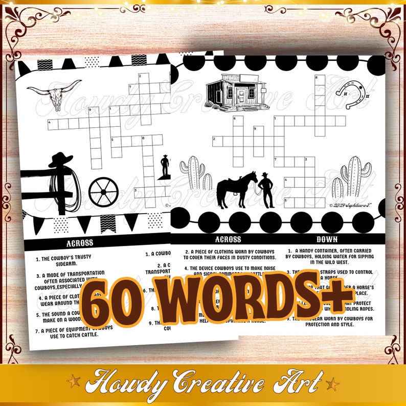 Western Crossword Puzzles Pages Fun Wild West Theme Word Game