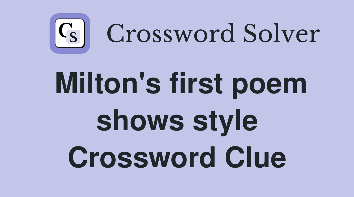 Milton #39 s first poem shows style Crossword Clue Answers Crossword Solver