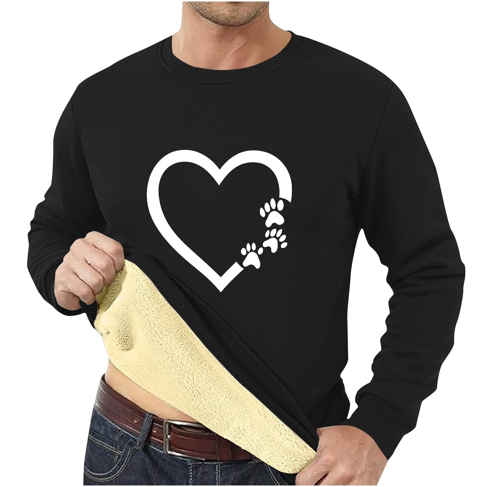 Tawop Men Shirts Crew Neck Long Sleeve Warm Fleece Graphic Heart Thick