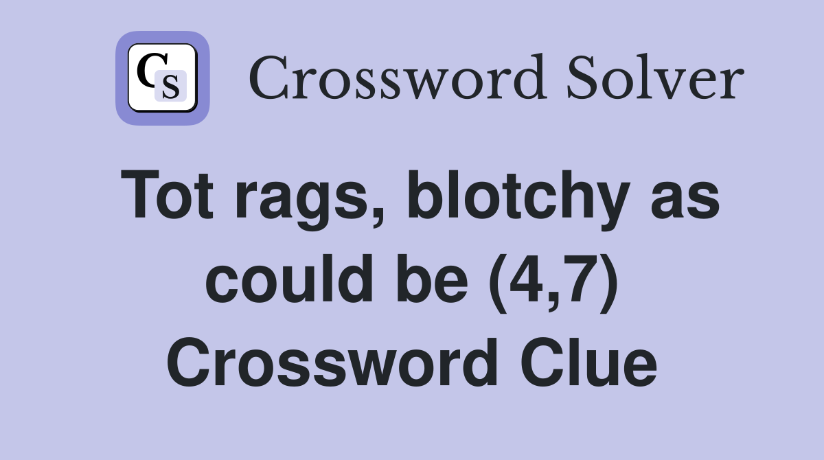 Tot rags blotchy as could be (4 7) Crossword Clue Answers