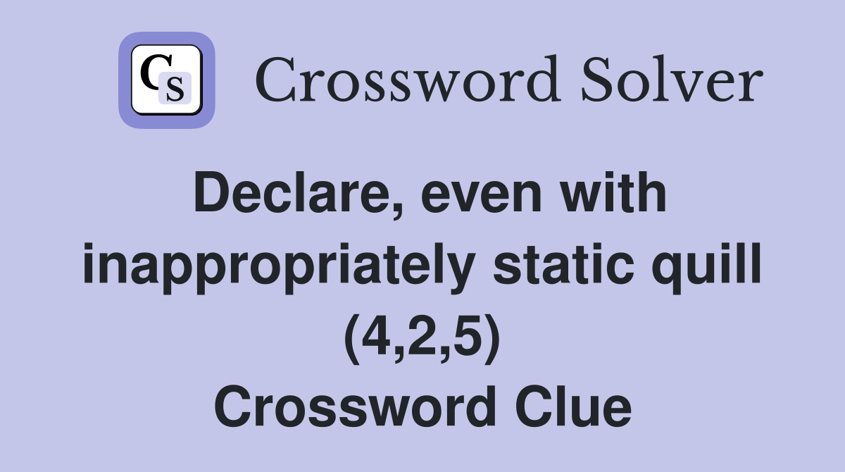 Declare even with inappropriately static quill (4 2 5) Crossword
