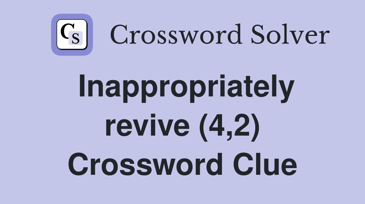 Inappropriately revive (4 2) Crossword Clue Answers Crossword Solver