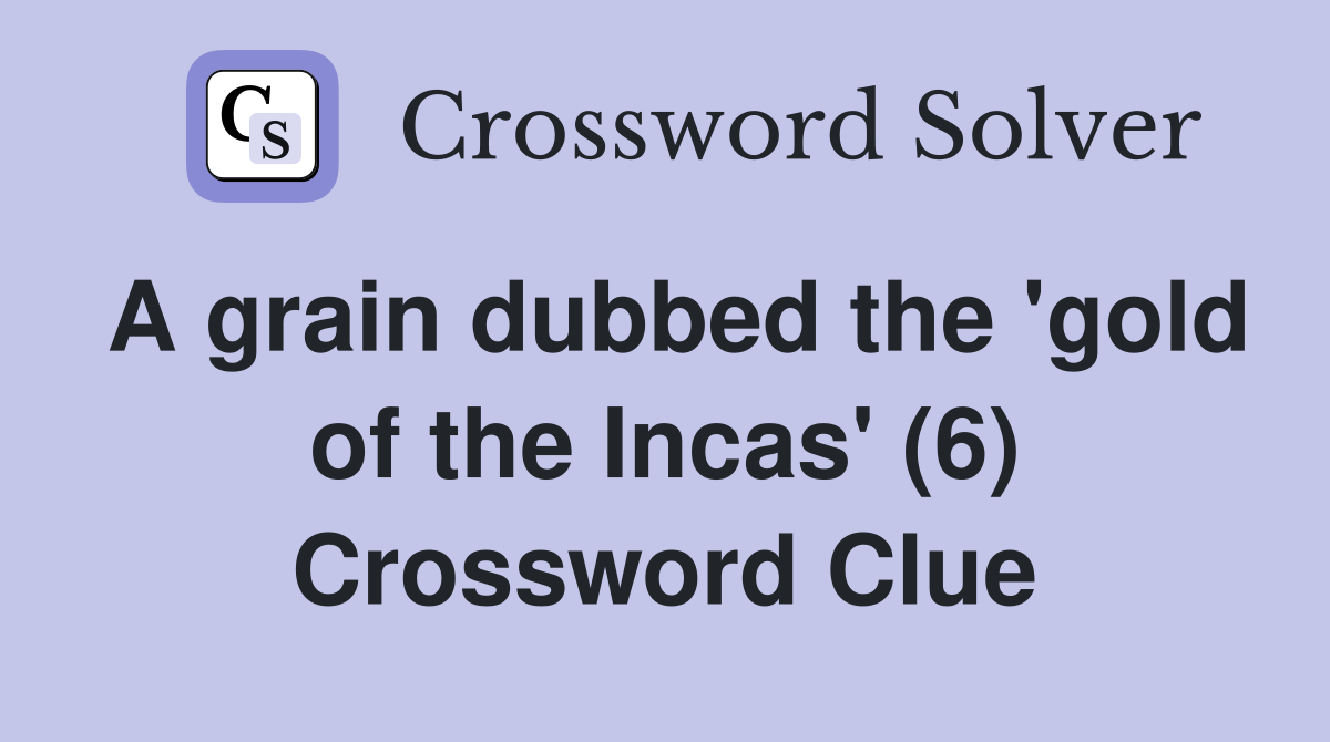 A grain dubbed the gold of the Incas (6) Crossword Clue Answers