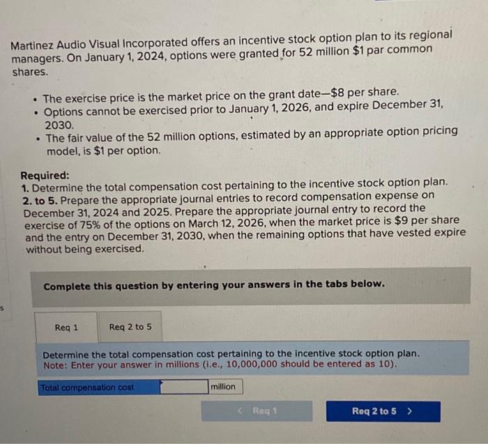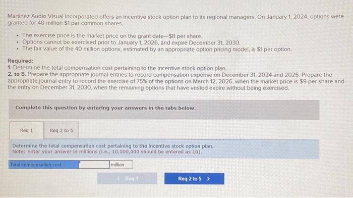 Answered: Martinez Audio Visual Incorporated offers an incentive stock