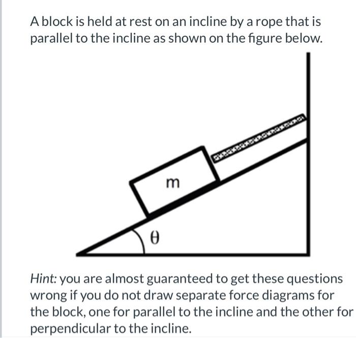 Solved A block is held at rest on an incline by a rope that Chegg com