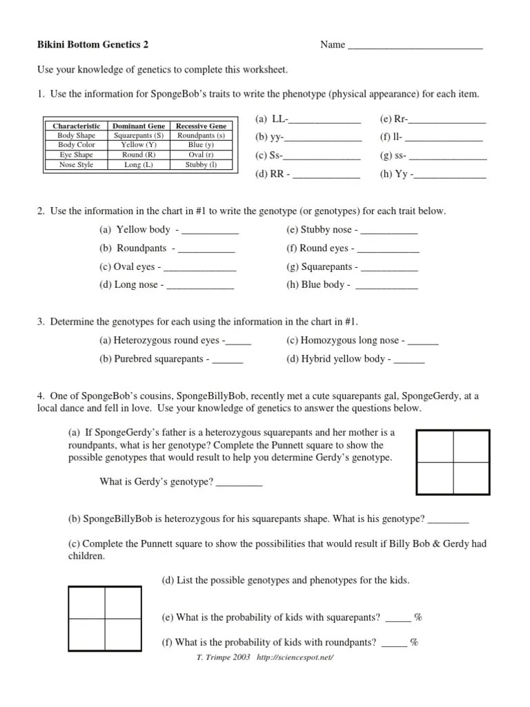 SpongeBob Genetics 2 answers pdf Course Hero