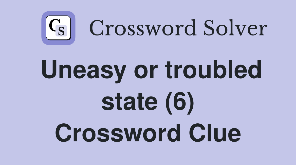 Uneasy or troubled state (6) Crossword Clue Answers Crossword Solver