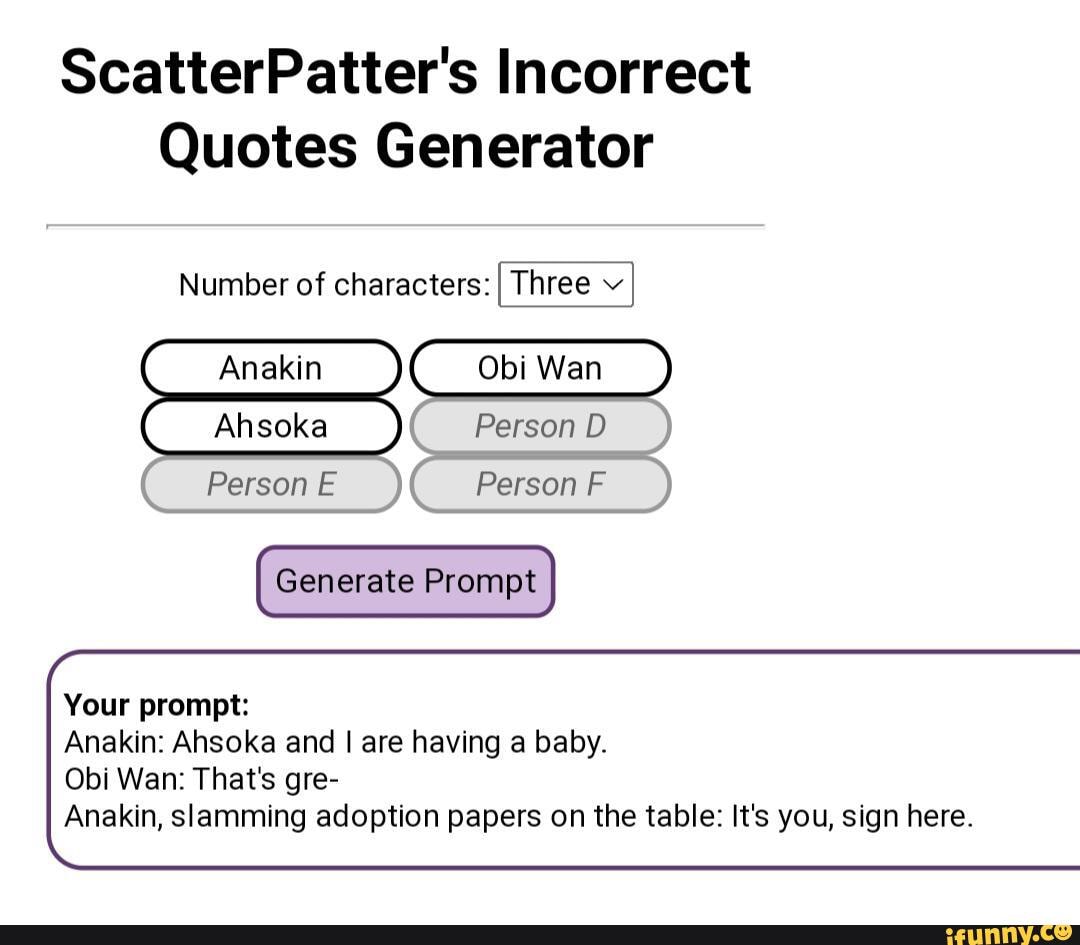 ScatterPatter #39 s Incorrect Quotes Generator Number of characters: Three