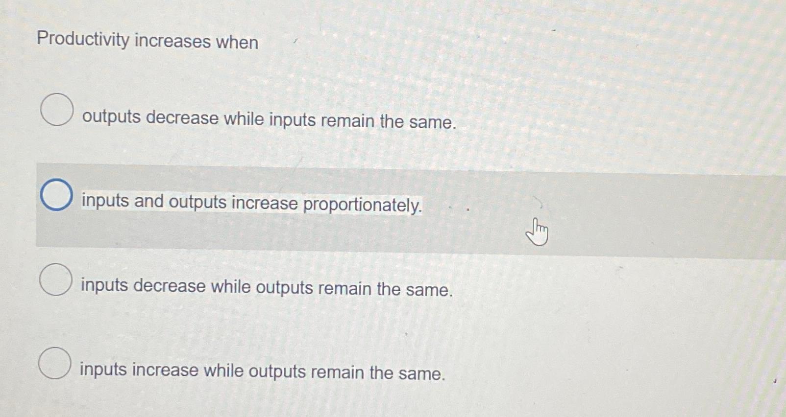 Solved Productivity increases whenoutputs decrease while Chegg com