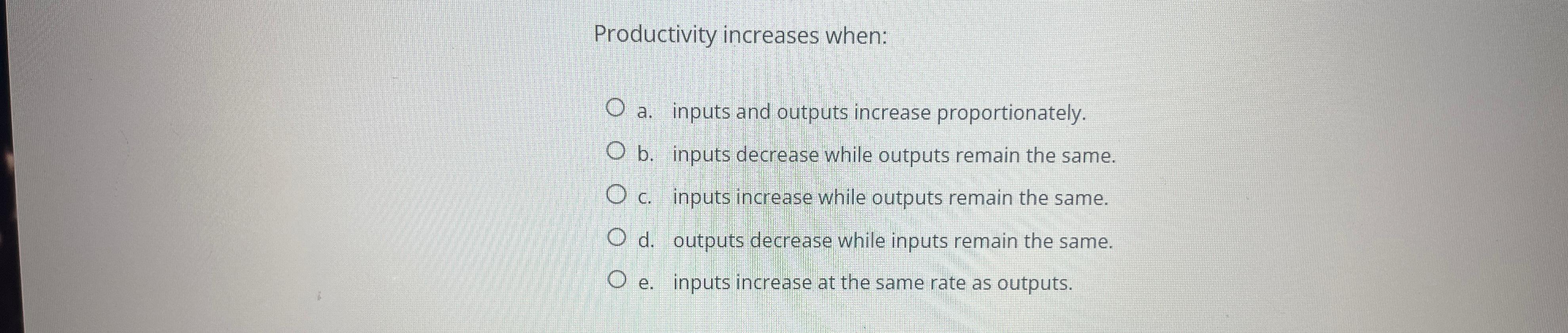 Solved Productivity increases when:a inputs and outputs Chegg com