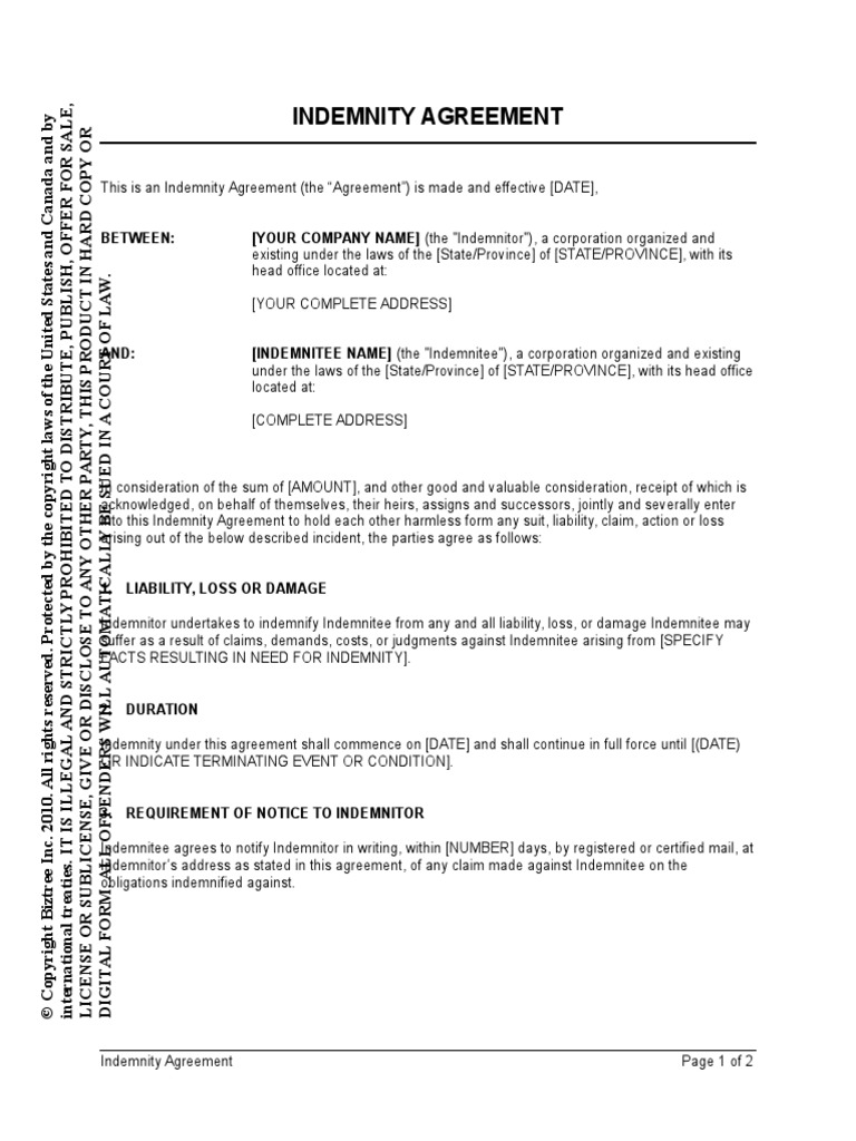 Here are some of the images for Indemnity Agreement Template that we found in our website database.