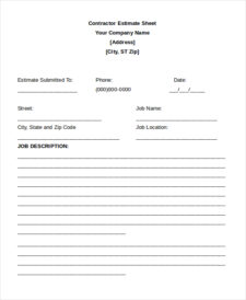 Contractor Bid Estimate Samples 5 Free Construction Estimate Templates