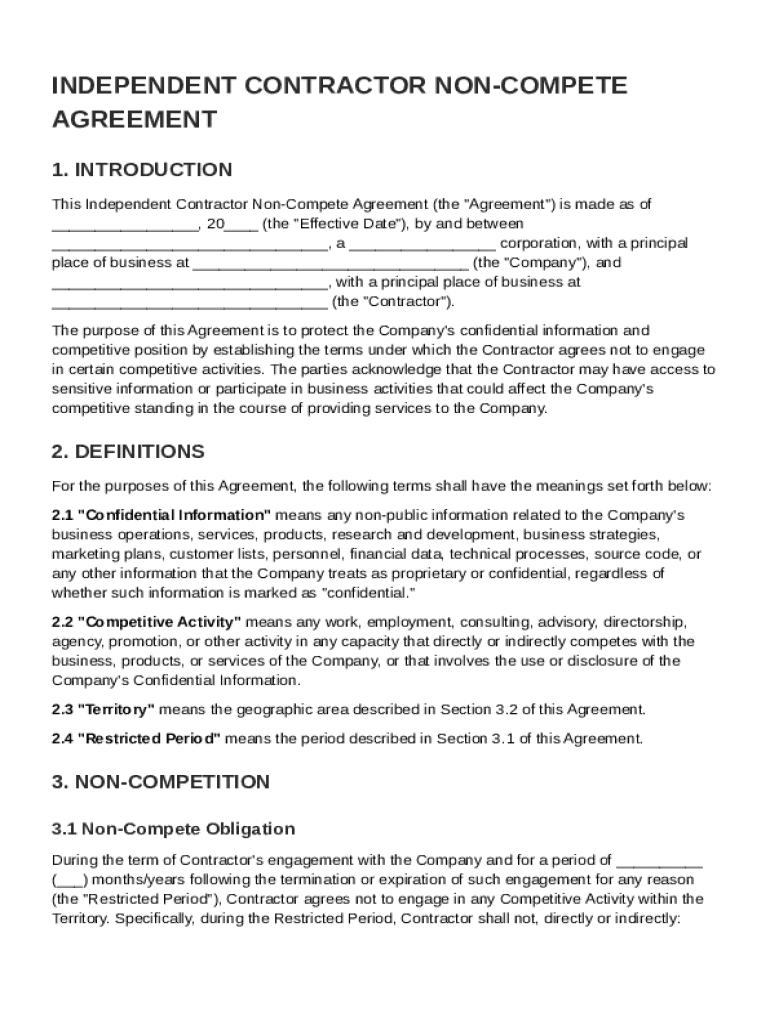 Free Independent Contractor Non Compete Agreement PDF Word eForms