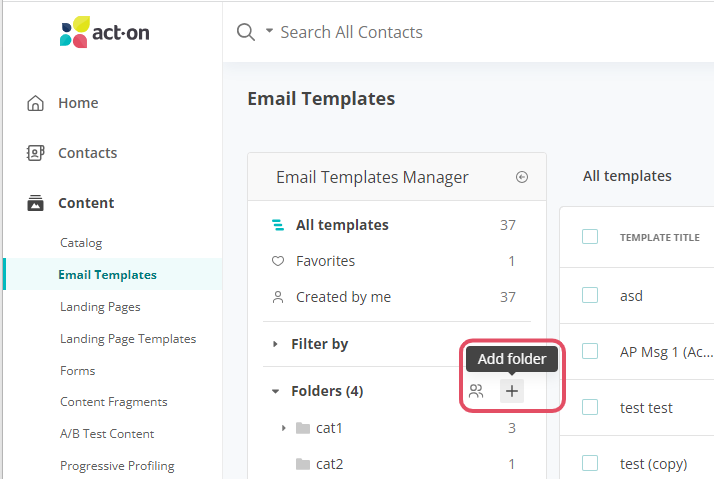 Folders for Email Templates Act On Connect Home