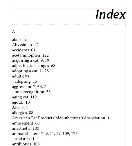 Index In A Book
