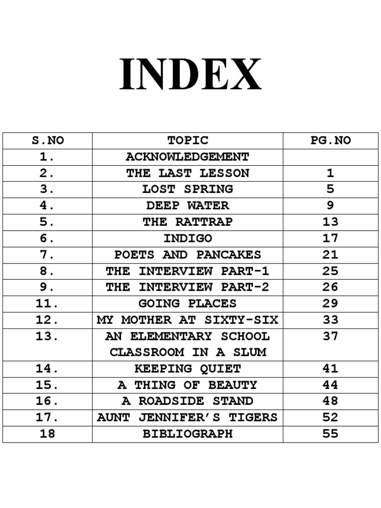 Index For Class 12 English Project PDF