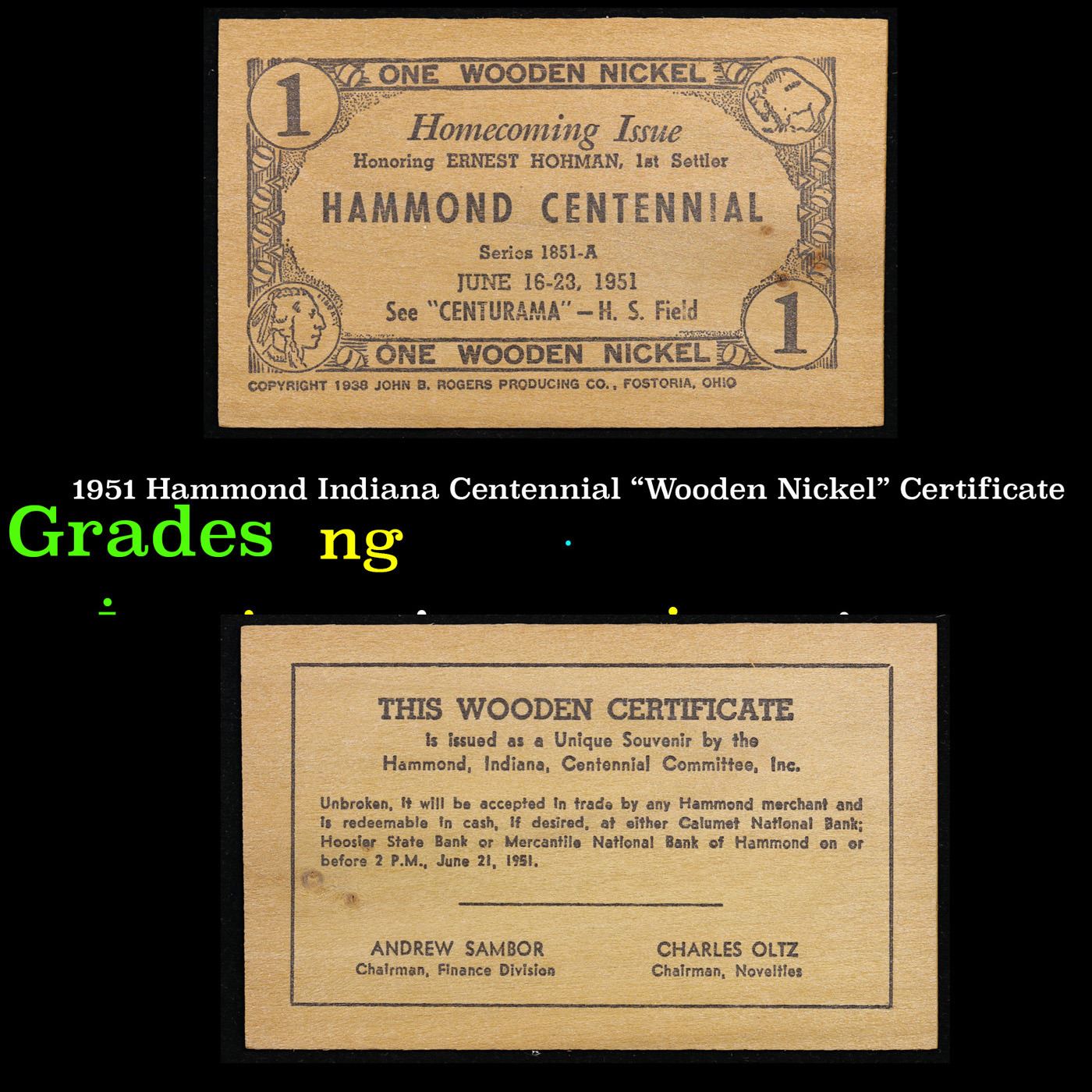 1951 Hammond Indiana Centennial quot Wooden Nickel quot Certificate