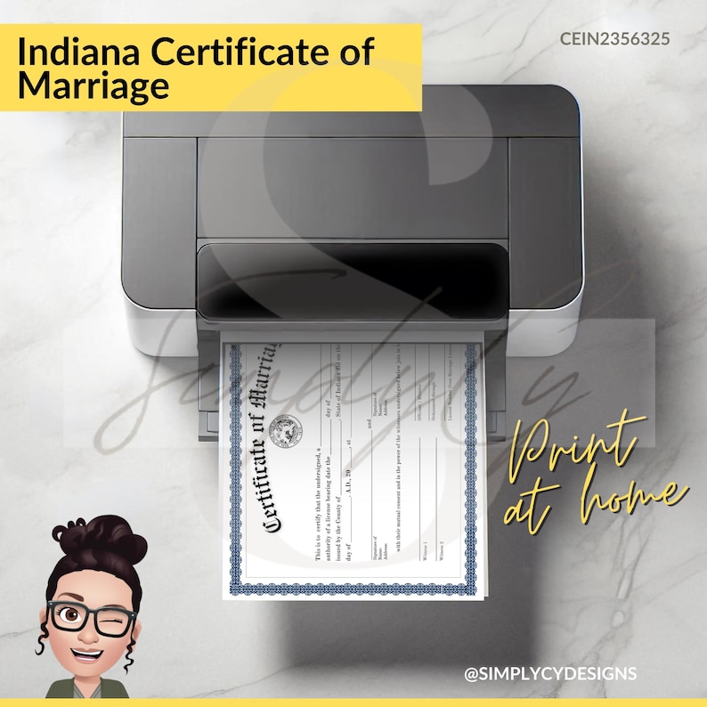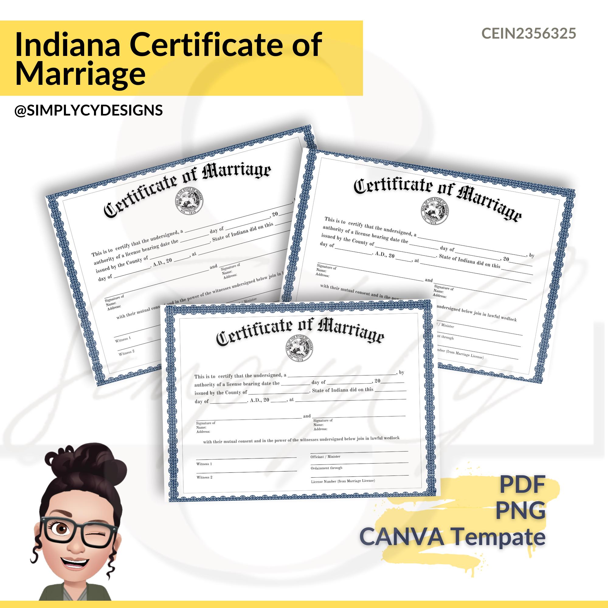 Indiana Marriage Certificate Printable Customizable Marriage Keepsake