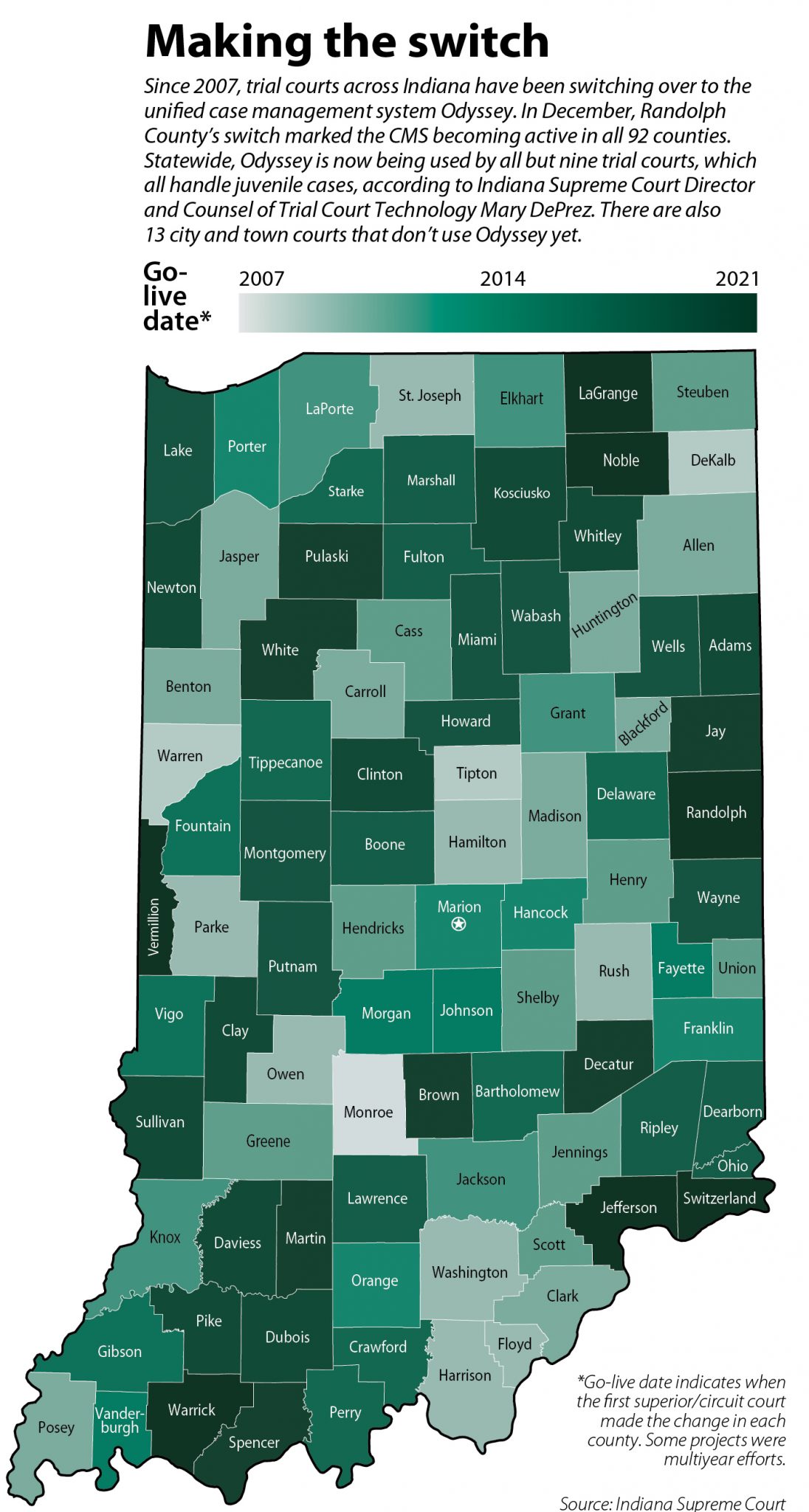 On the same page: Odyssey CMS now in all 92 counties The Indiana Lawyer