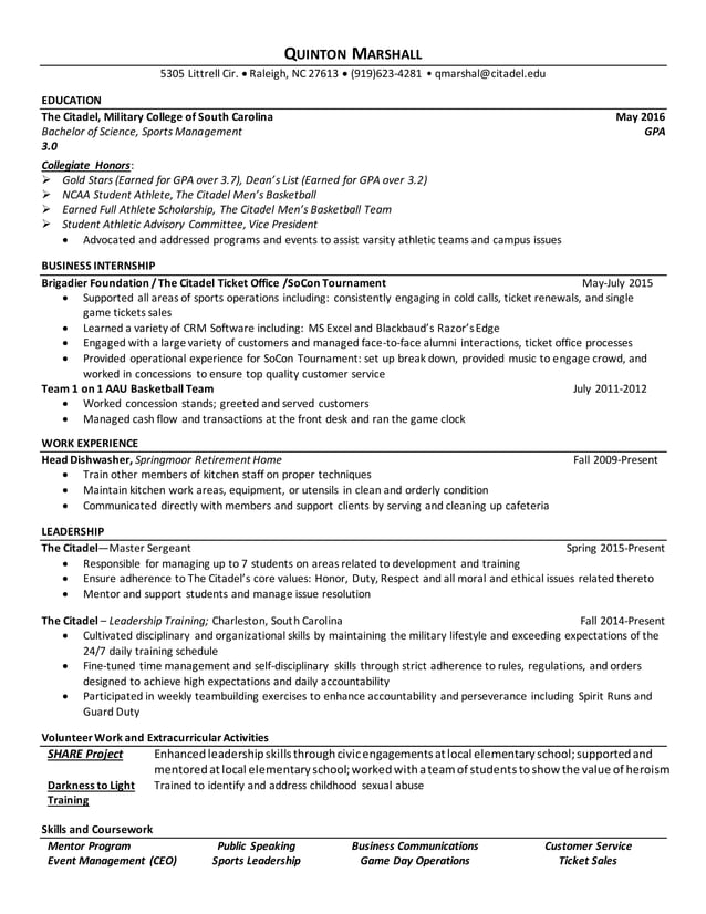 Quinton Marshall Resume Indiana Pacers DOCX
