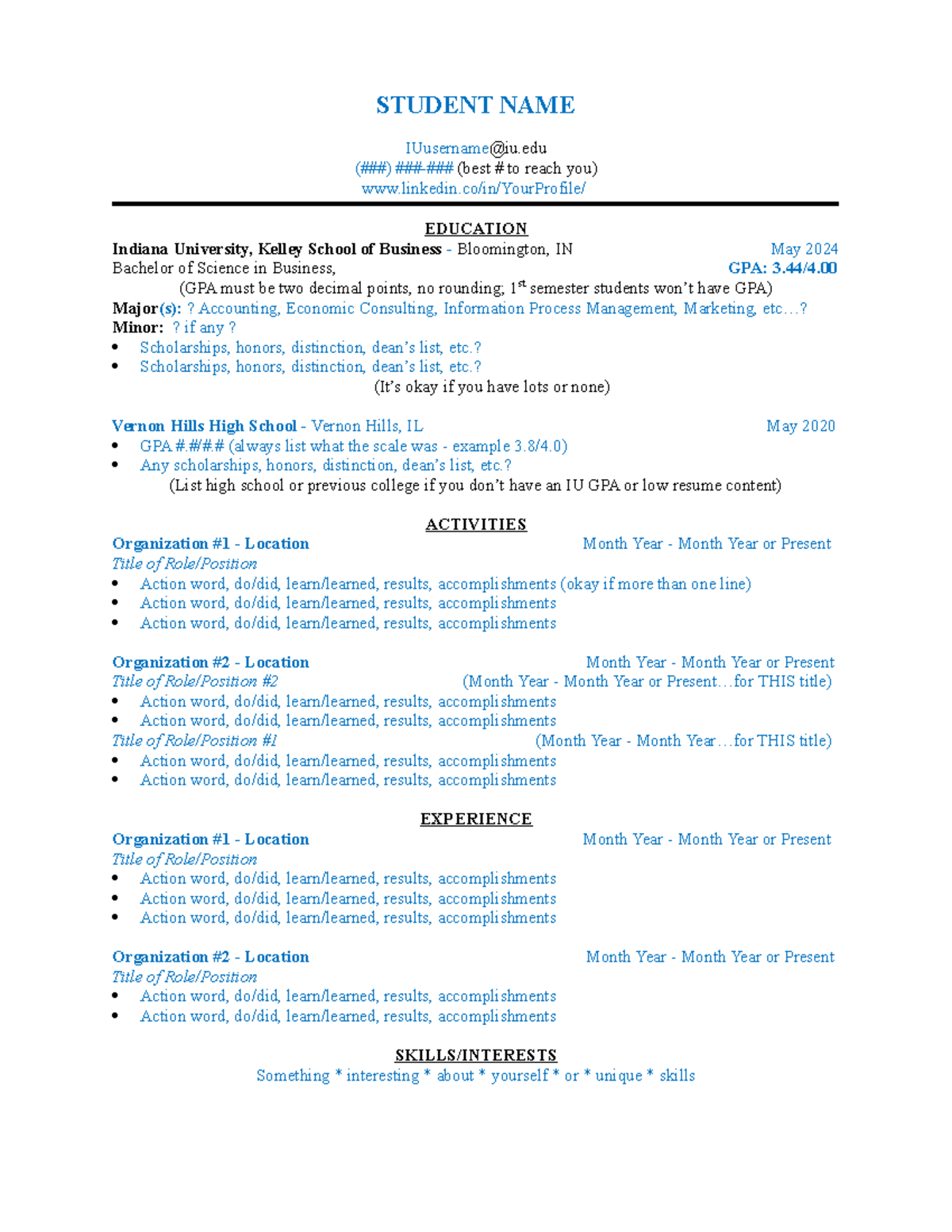 Resume Kelley Template PDF Indiana University Bloomington Change