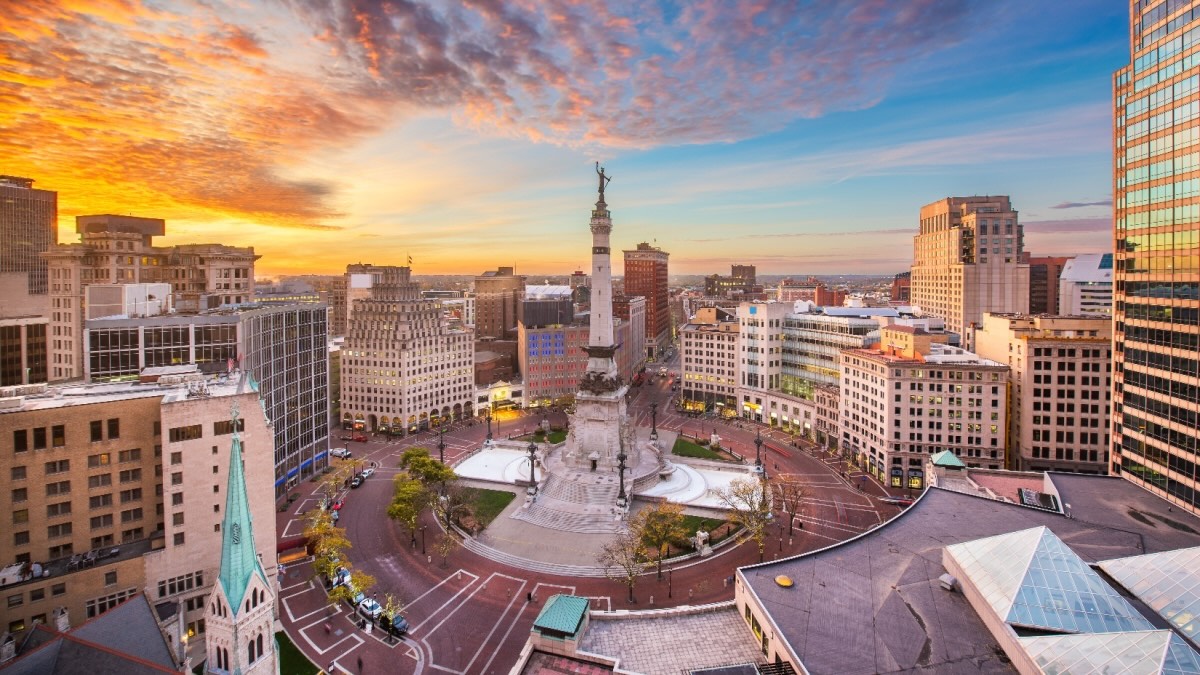 Indianapolis Indiana Violet Purple USA America Skyline Sunrise Landing