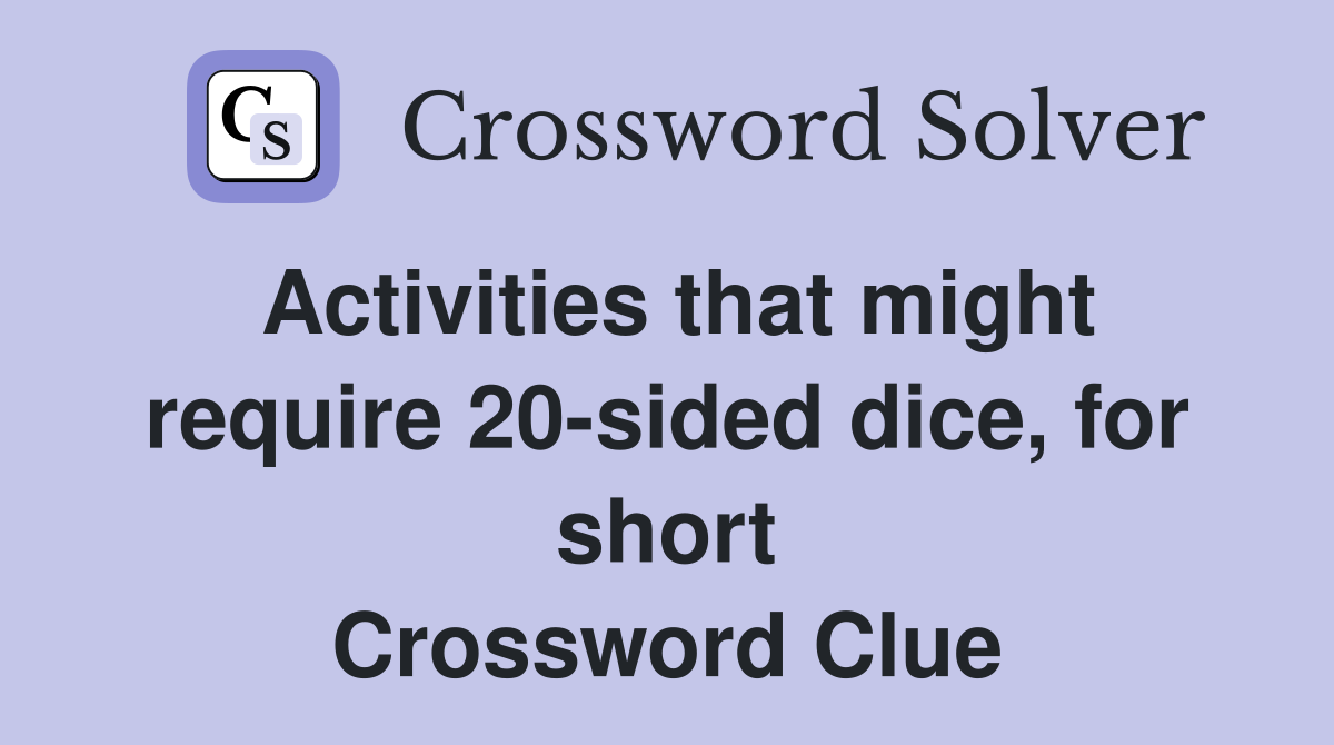 Activities that might require 20 sided dice for short Crossword Clue