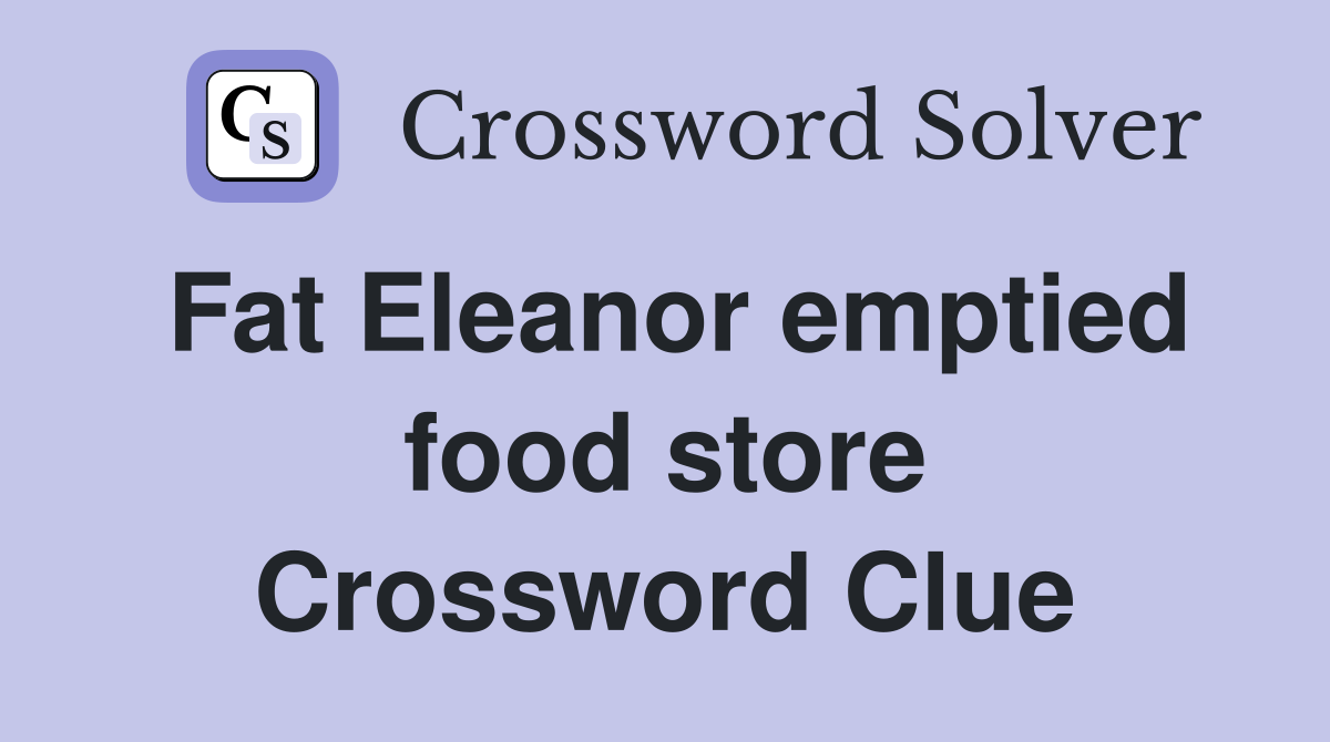 Fat Eleanor emptied food store Crossword Clue Answers Crossword Solver