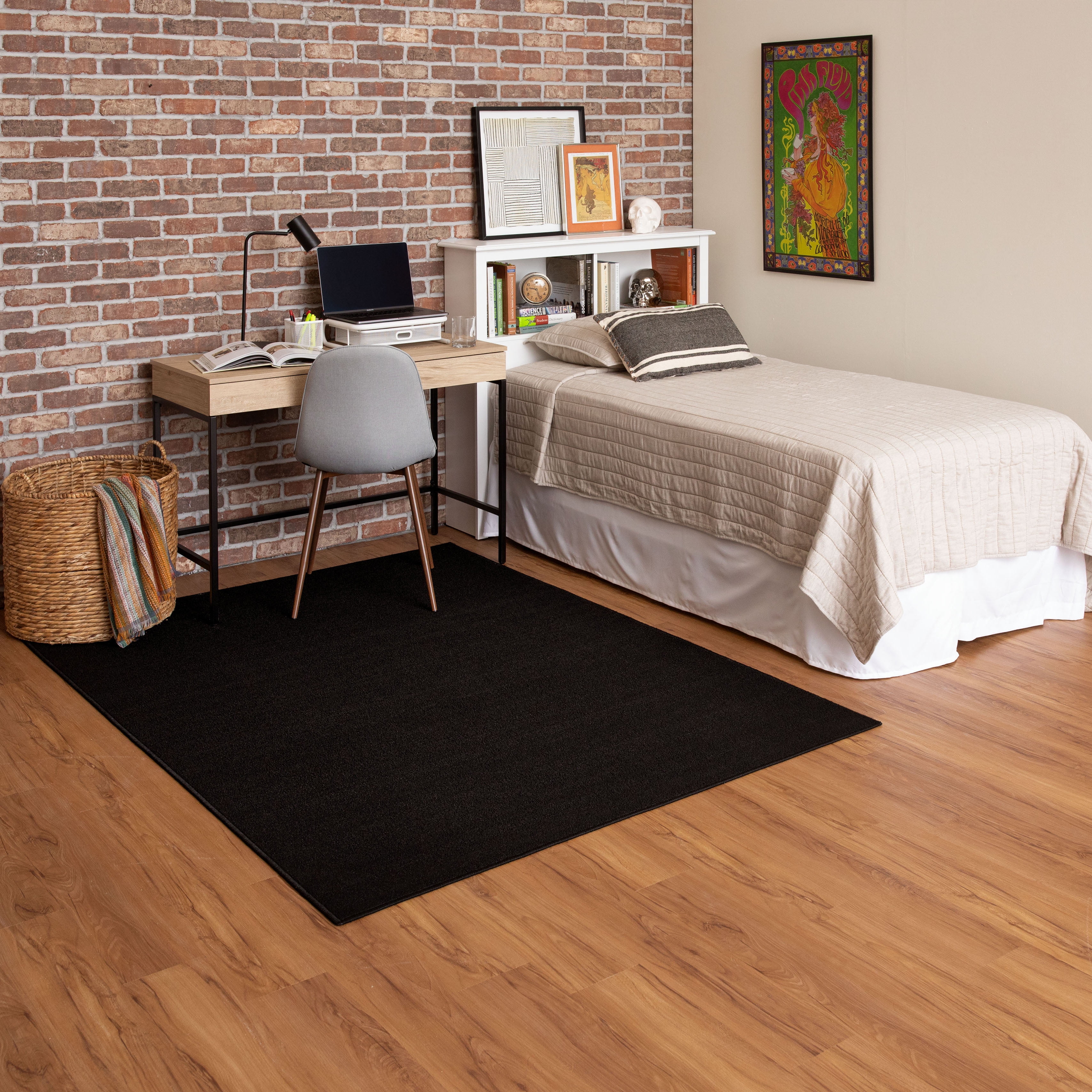 Mainstays Titan Solid Indoor Living Room Area Rug Black 5 #39 x 7