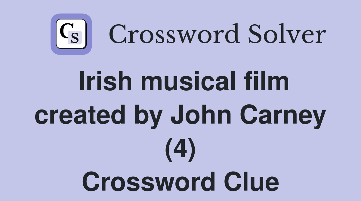 Irish musical film created by John Carney (4) Crossword Clue Answers