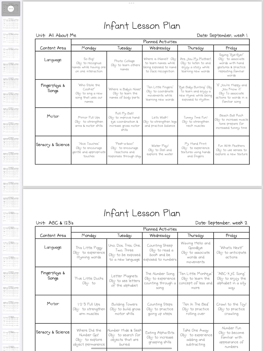 Year Long Infant Lesson Plan 50 Pages Etsy