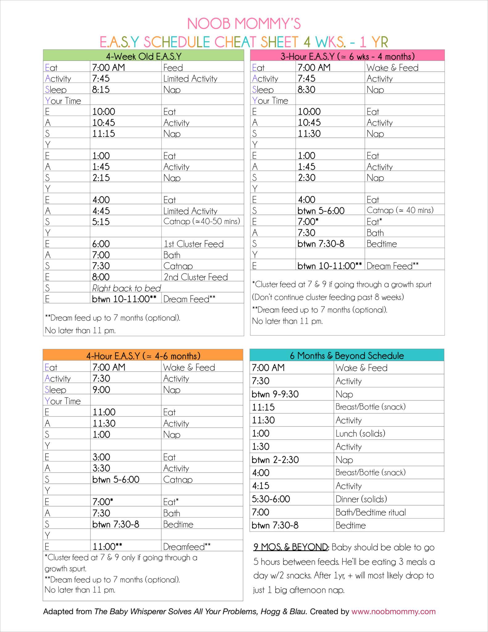 Printable Baby Schedule Chart To Help Baby Settle Into Routine Baby