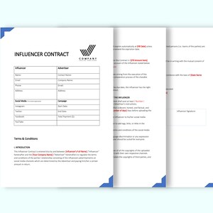 Influencer Collaboration Agreement template Pdf Etsy