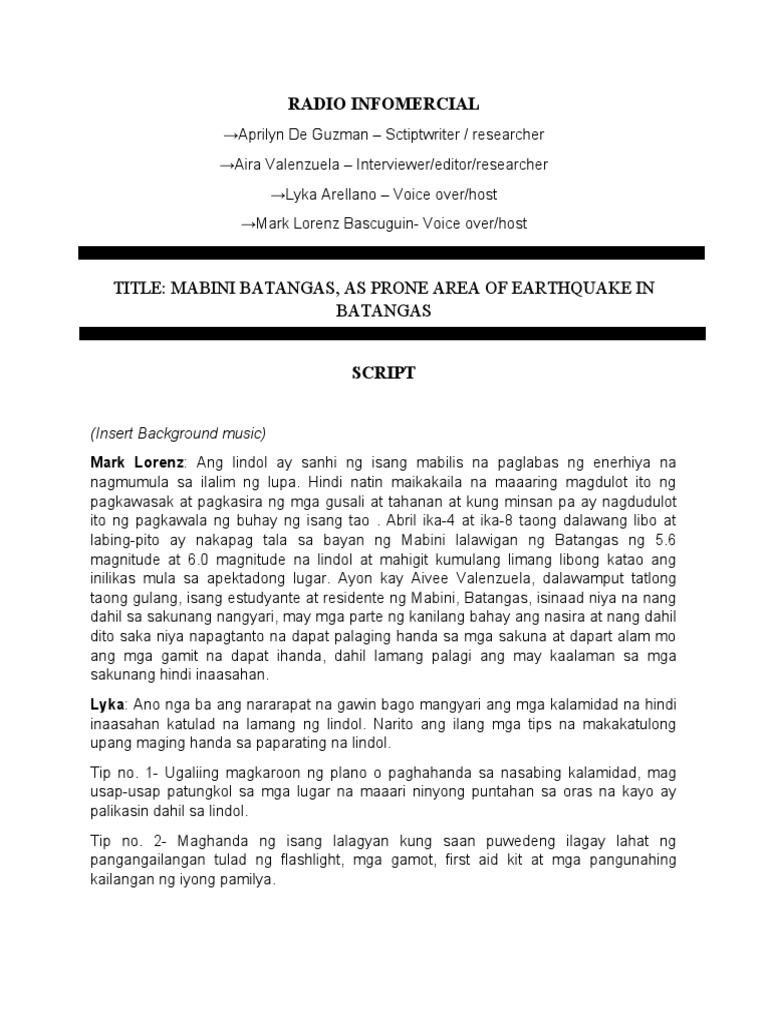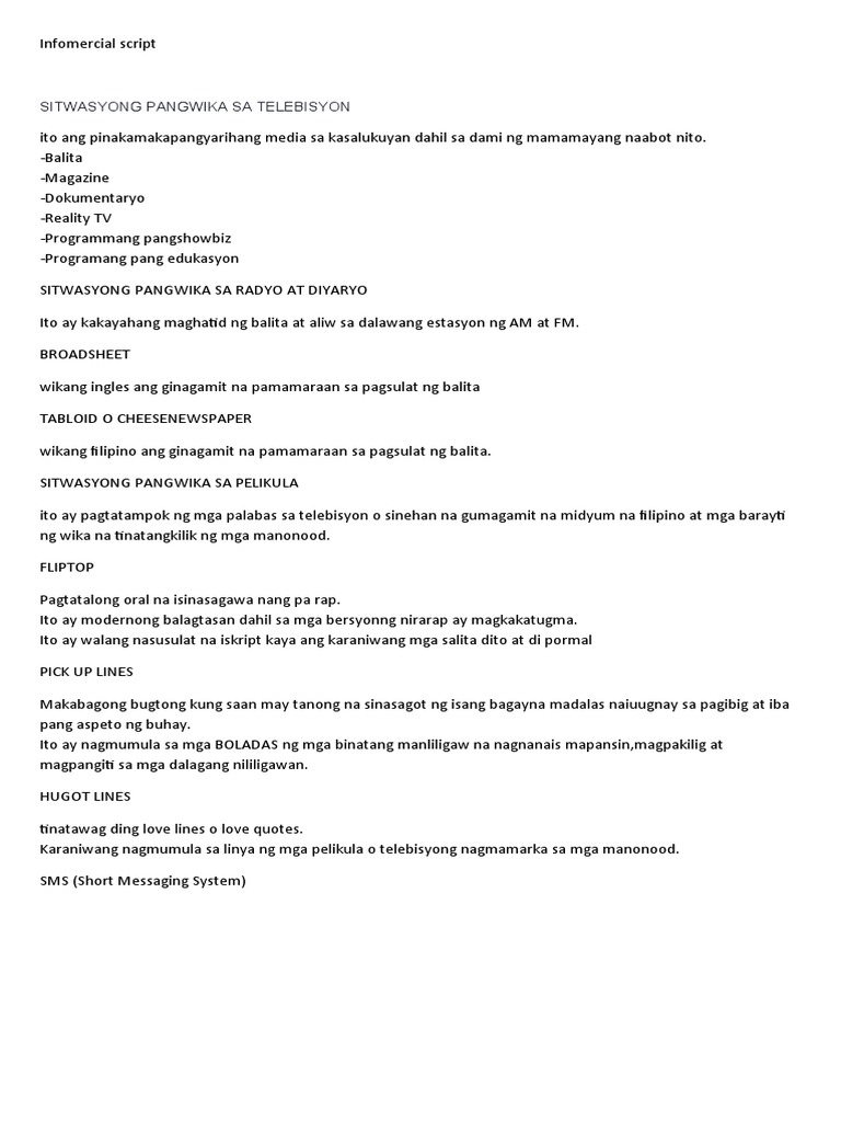 Infomercial Script Template in Filipino for Radio Broadcast Studocu