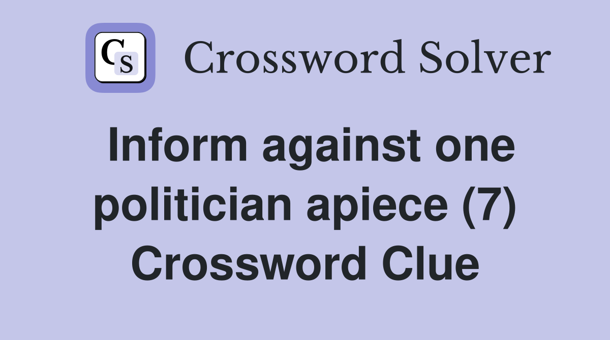 Inform against one politician apiece (7) Crossword Clue Answers