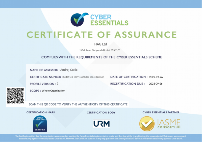 Cyber Essentials Certificate of Assurance NBS Source