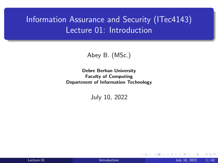 Information Assurance Security Lecture: Introduction