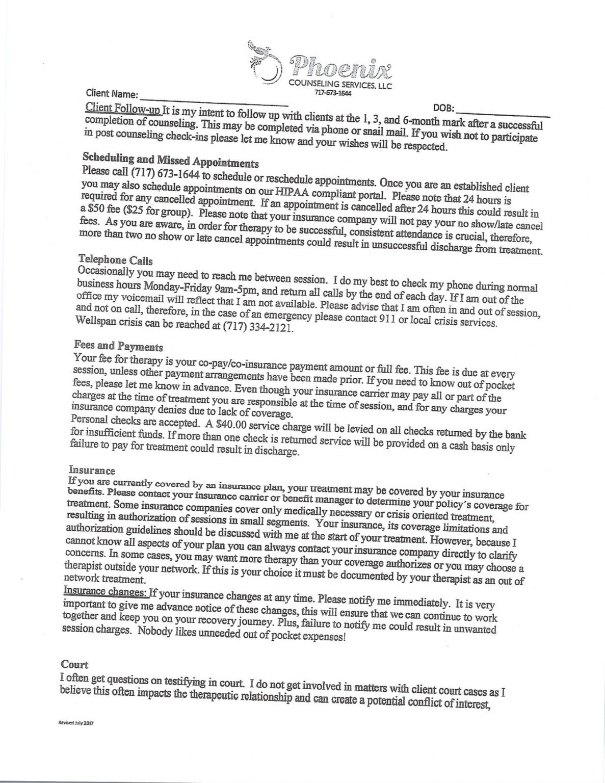 Professional Counseling Informed Consent Form Example Free PDF Download