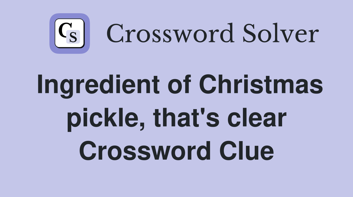 Ingredient of Christmas pickle that #39 s clear Crossword Clue Answers