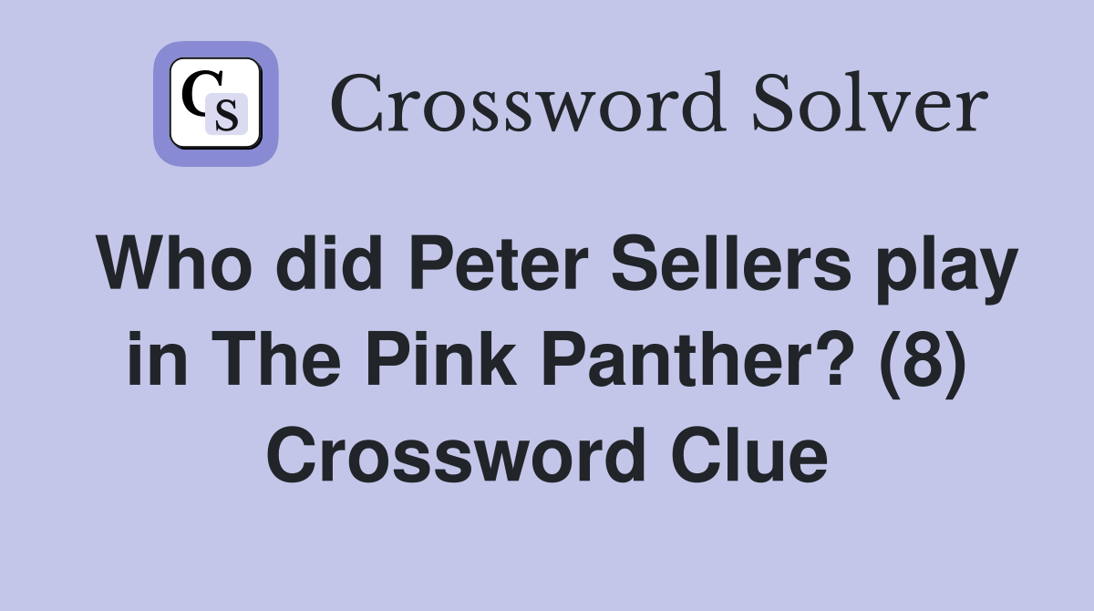 Who did Peter Sellers play in The Pink Panther? (8) Crossword Clue