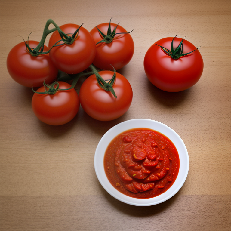 Fresh Red Tomatoes and a Jar of Homemade Tomato Sauce with Basil