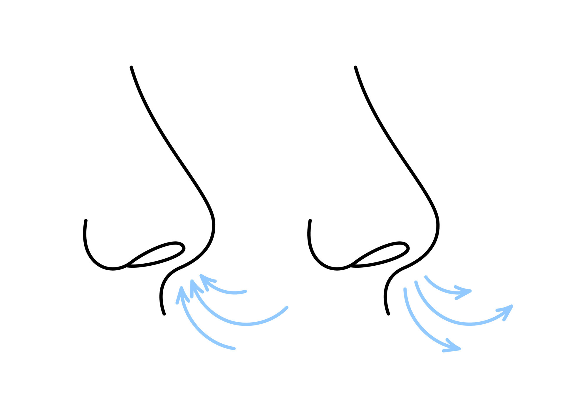 Nose breath line icon Breathing exercise of nose deep exhale and