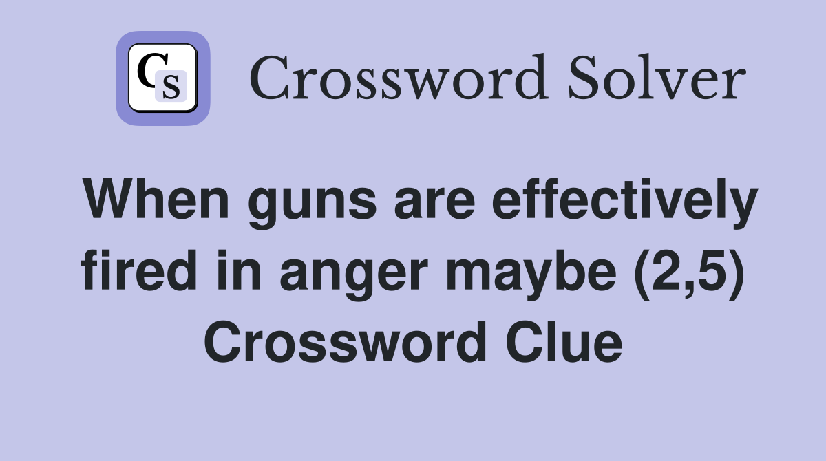 When guns are effectively fired in anger maybe (2 5) Crossword Clue