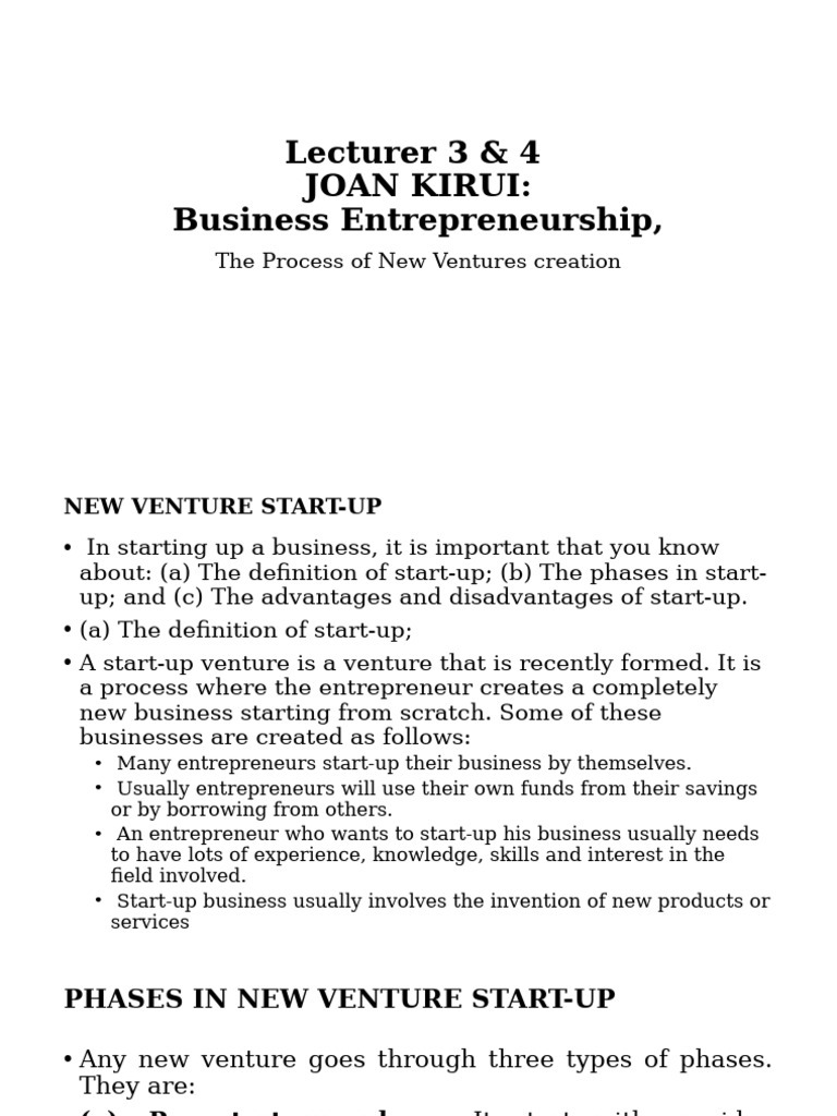Steps to Start a New Venture PDF Entrepreneurship Economies
