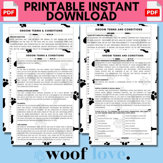 Printable Dog Grooming Terms Conditions PAW EDITION Etsy UK